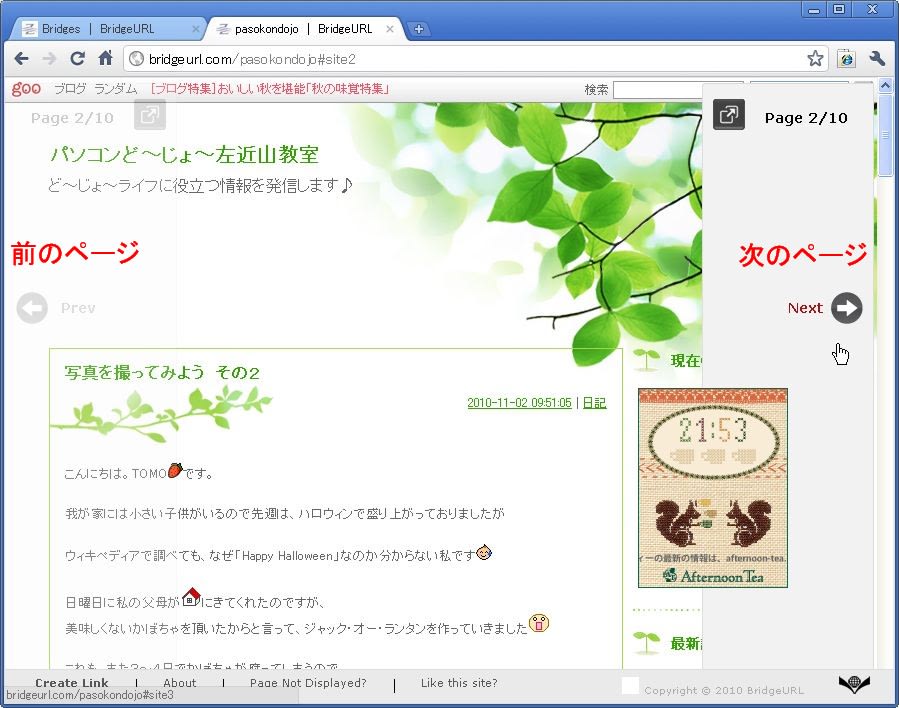 マウスカーソルを左に持っていくと、「Prev」が現れ、クリックで前のページへ。
