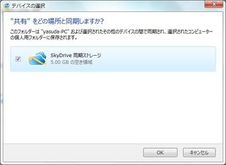 「SkyDrive同期ストレージ」を選んで、「OK」。