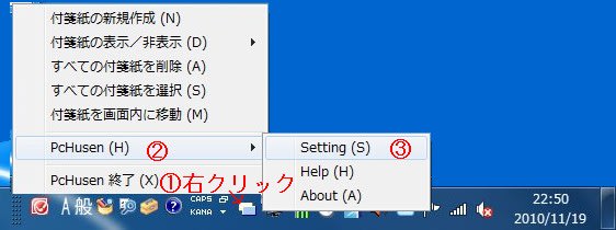 3.タスクトレイの「PcHusen」アイコンを右クリック