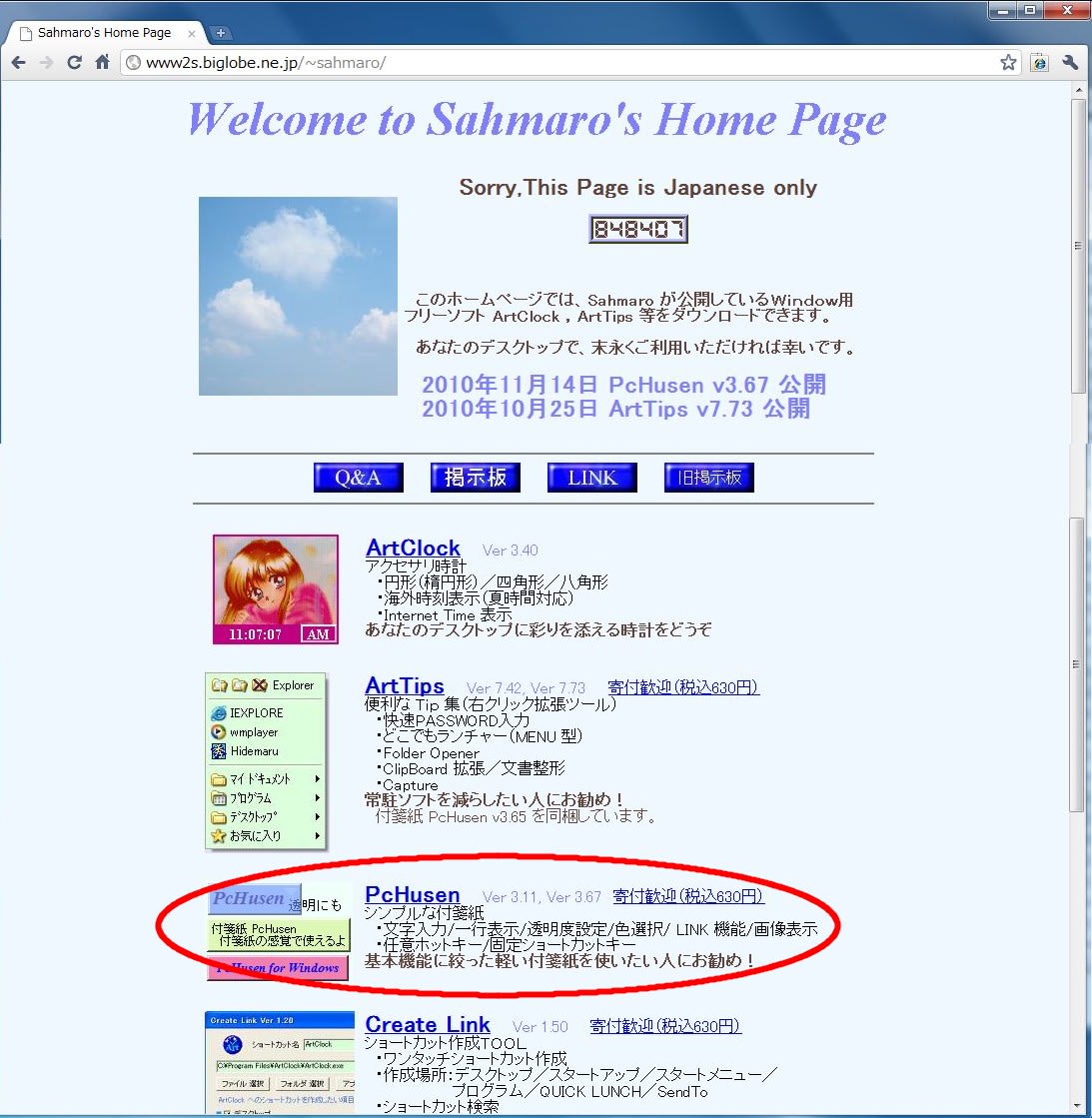 2.「PcHusen」作者のページ、または窓の杜などから、