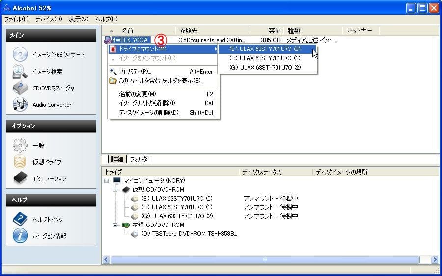 同様の仮想ドライブソフトでは、「DAEMON Tools