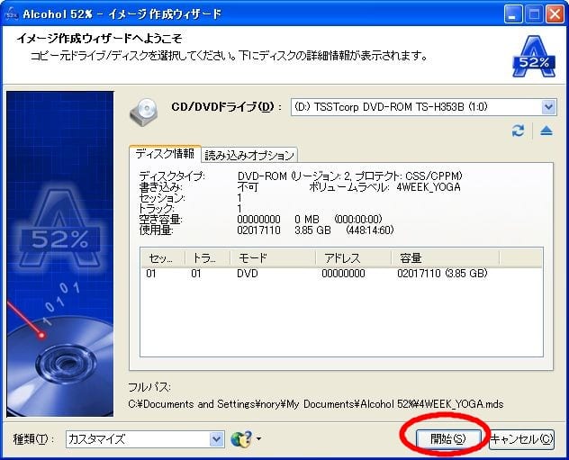 これで、実際にCD/DVDをドライブに入れたような感じで、