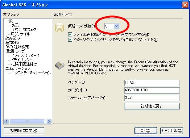 「仮想ドライブ」をクリックして、必要な仮想ドライブ数(0~6)を選び、