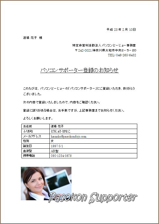 差し込み文書の作成