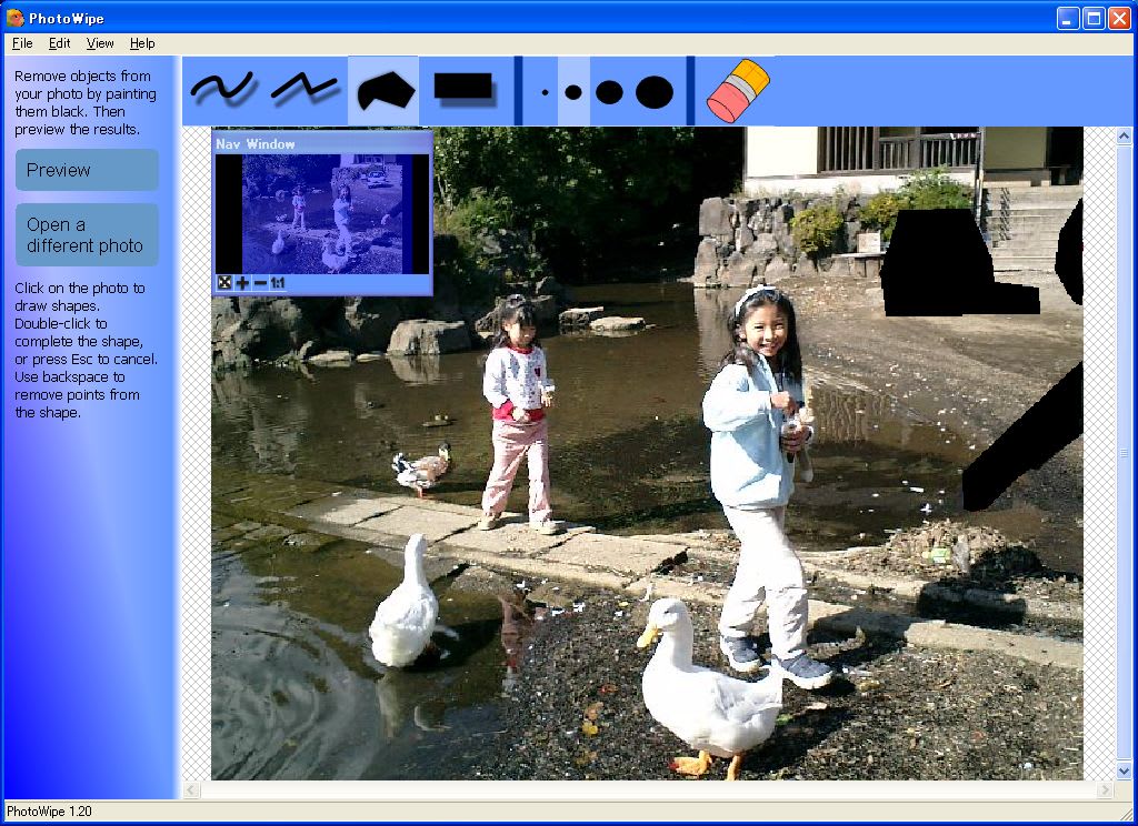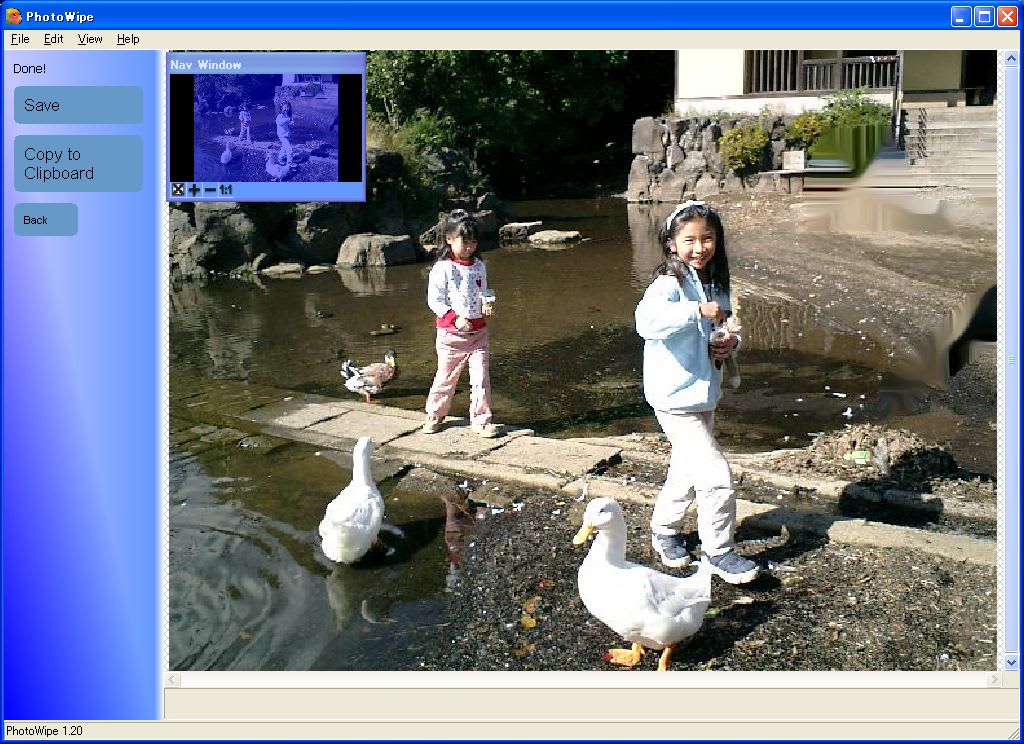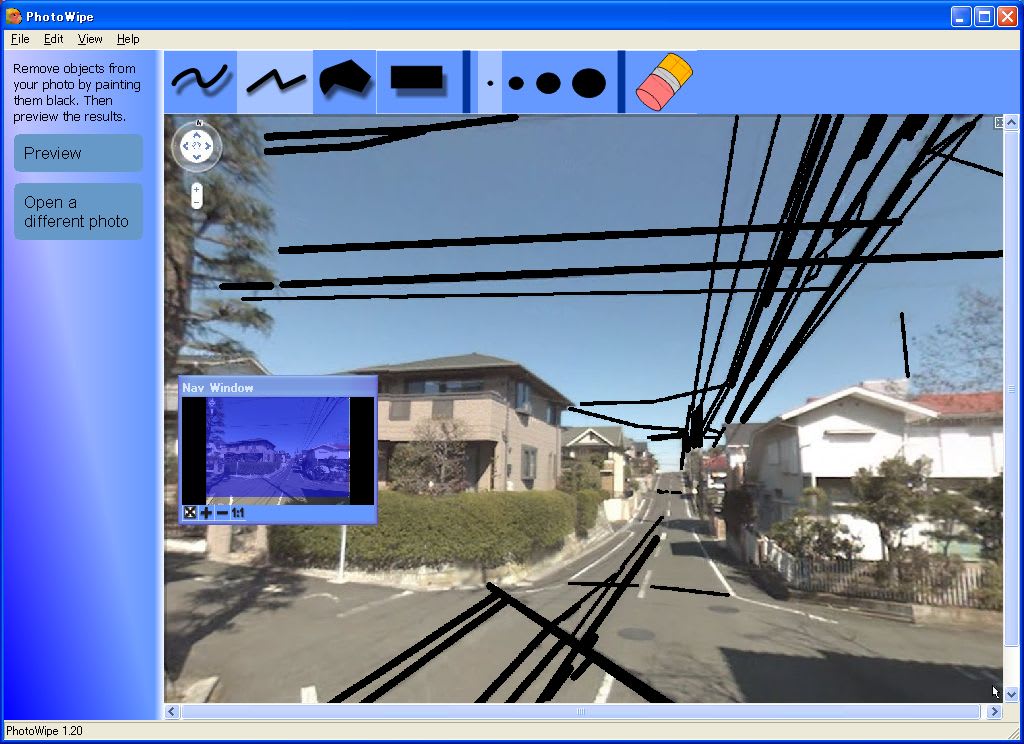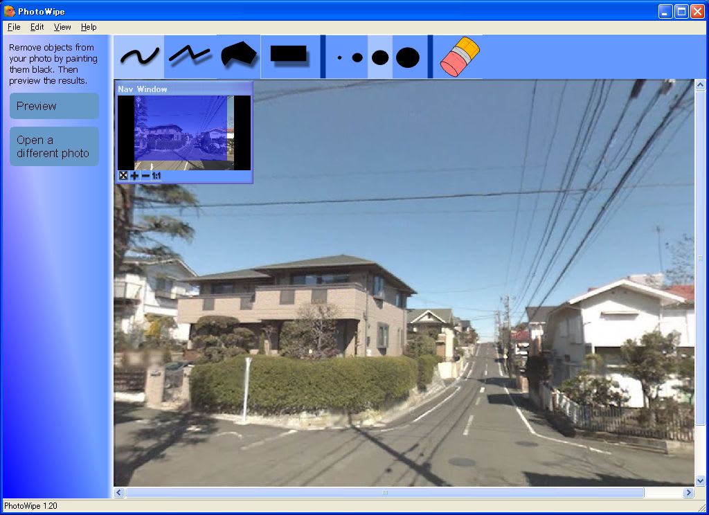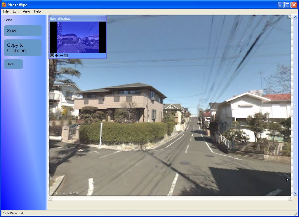 「Photo Wipe」をインストールし、近所の写真を開いたところ。