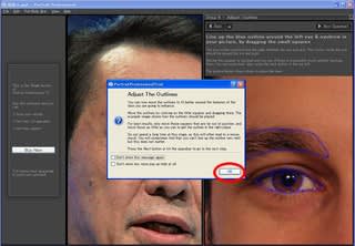 右側の写真例に従って、向かって左側の目の端をクリック。