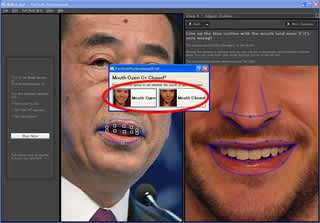 同様にして、向かって右側の目の端、鼻の頭、口の両端を指定します。