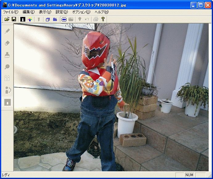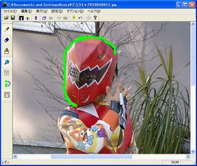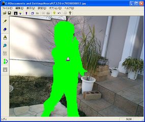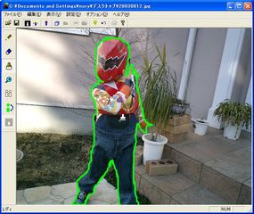 左側のツールボックスの「鉛筆」で、前景の輪郭を縁どります。