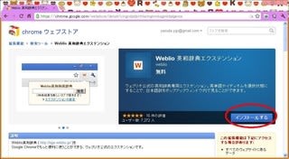Google ChromeでWeblioエクステンションのページ↑を開いて、