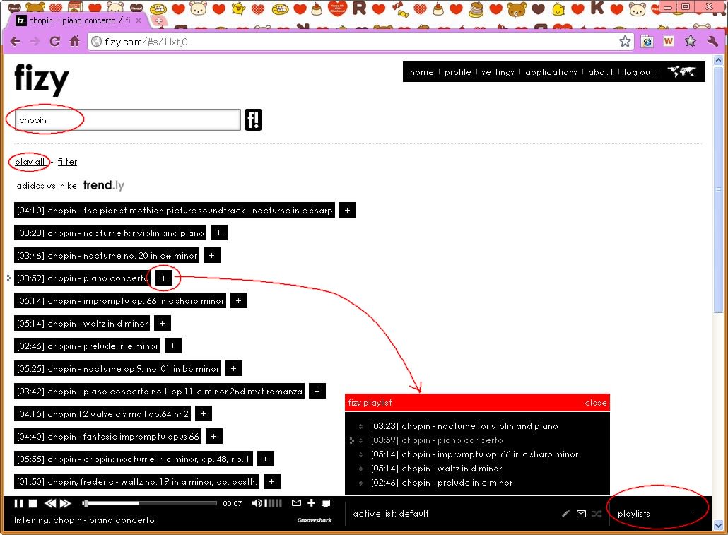 「fizy」という、ネット上の音楽を検索して、聴くことのできるサイトの紹介です。