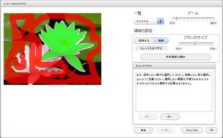 スマートカットアウト、使ってみました。削除する方はともかく、保存したい部分はきれいに塗りつぶさないとだめなんですね(^_^;)。根気がいります・・・。大雑把な性格だから、むかないかも。でも年賀状に使えたらおもしろいな~。