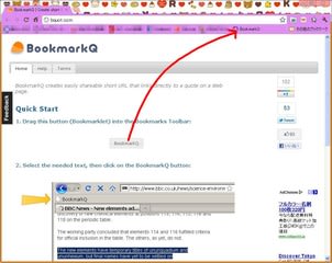 ②ブックマークバーの「BookmarkQ」ボタンを、クリック。
