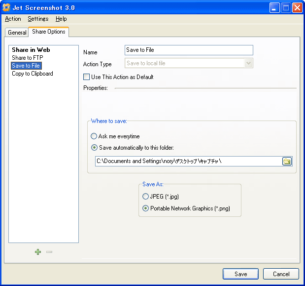 「Save to File」の項目で、保存先フォルダを指定しておいたほうがラクです。