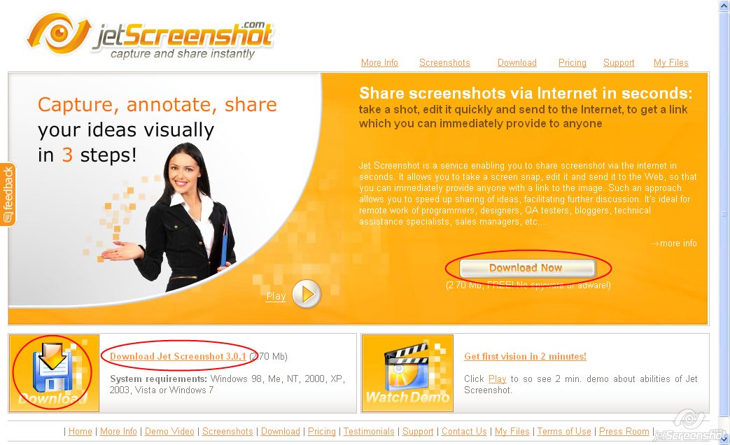 Jet Screenshot」のページを開いて、↓図のいずれかをクリックすると、