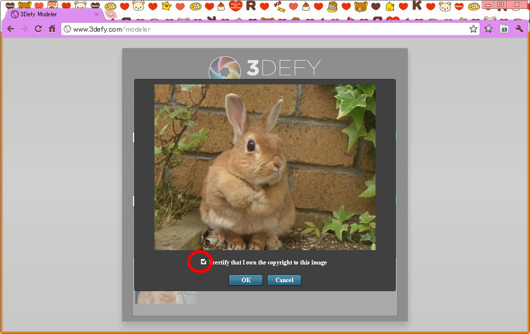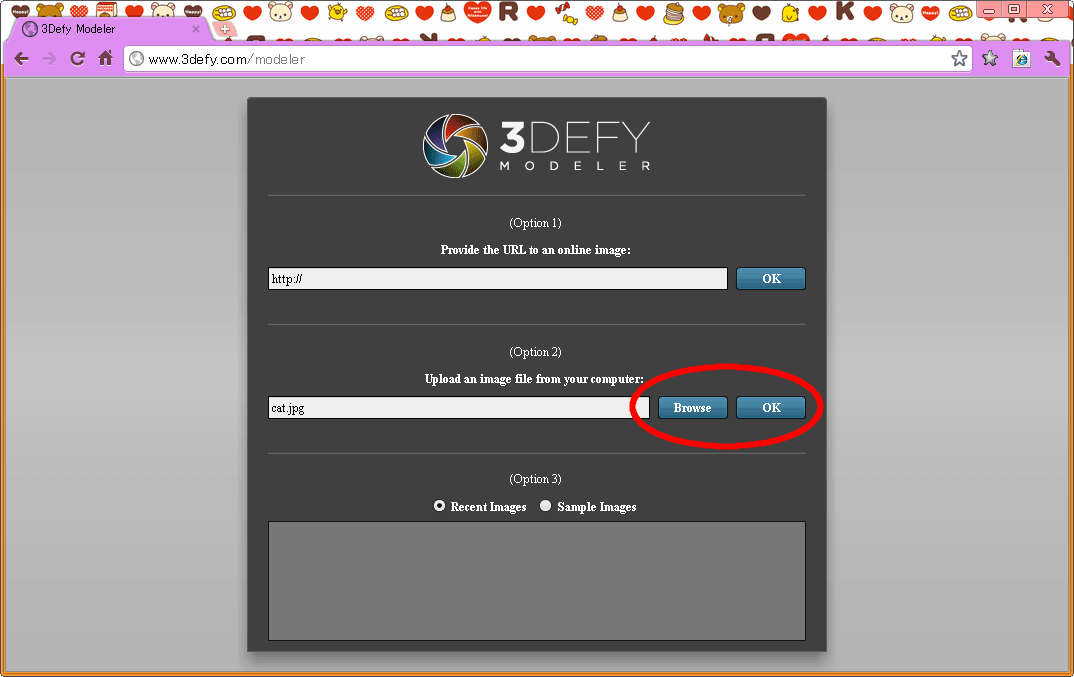 自分のパソコンにある写真なら、「Browse」で選んで、「OK」。