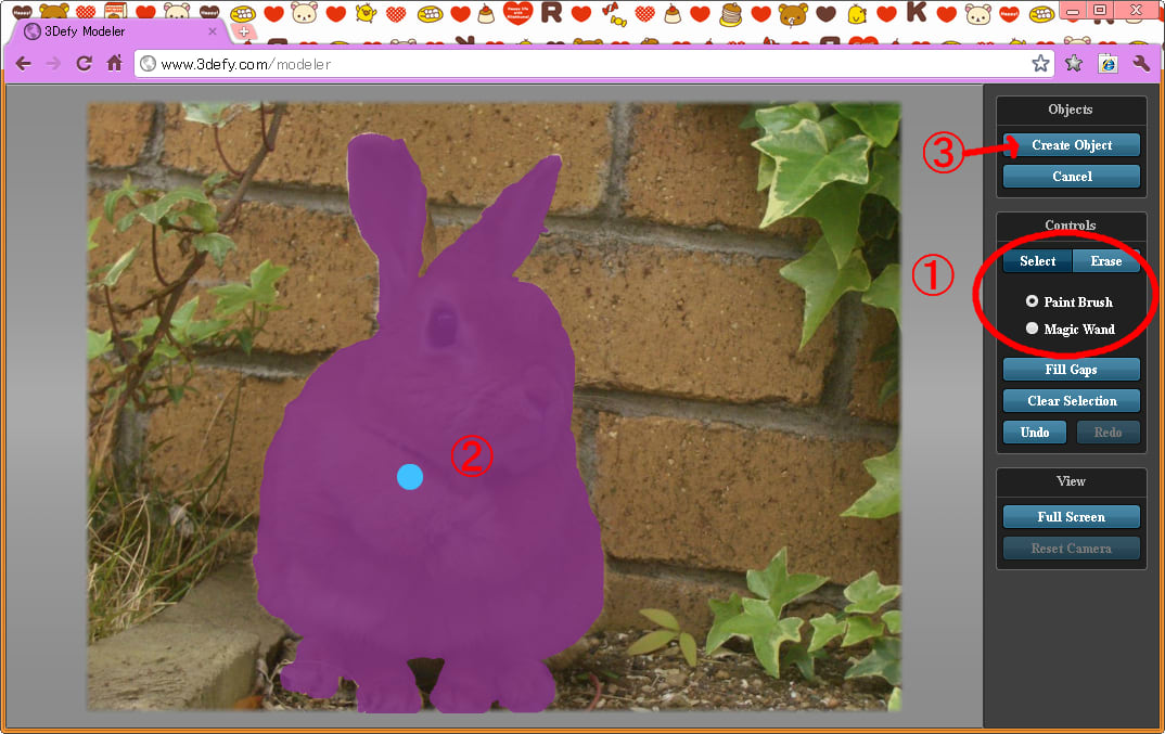 「Paint Brush」は筆モード、「Magic Wand」は自動判断モード。