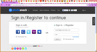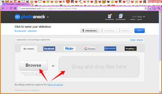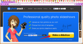 「PhotoSnack」サイトで、「Make a slideshow」ボタンをクリック。