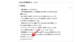 下のほうにいくと、「青柳隷書しもフォント2」のダウンロード・リンクを