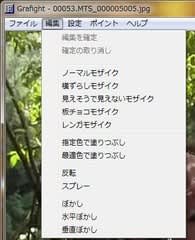 範囲が決まったら、「編集」メニューから、モザイクの種類を選択。