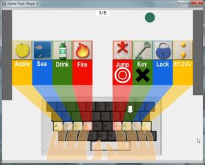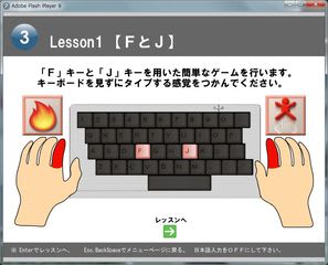 最初は、「F」と「J」のキーのみを使って、リズムをつかみます。