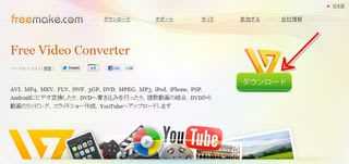 「freemake.com 」サイトを開き、「ダウンロード」をクリック。