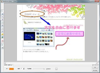 ドローウィンドウが開いて、文字や図形など、自由に描けます。