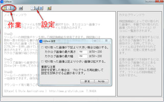 最初に「設定」ボタンで、切り取る顔画像のサイズについて設定。