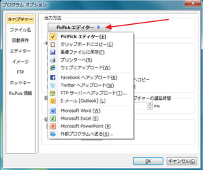 たとえば、左側「キャプチャー」項目で、「出力方法」の設定ができますが・・・
