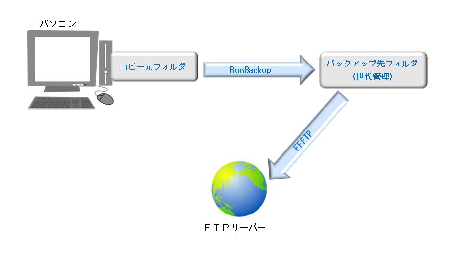 BunBackupもFFFTPも、コマンドラインでの実行に対応しているので、