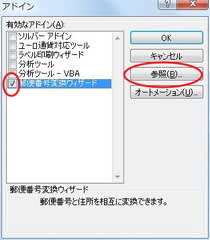 「郵便番号変換ウィザード」をチェックし、「参照」ボタンをクリック。