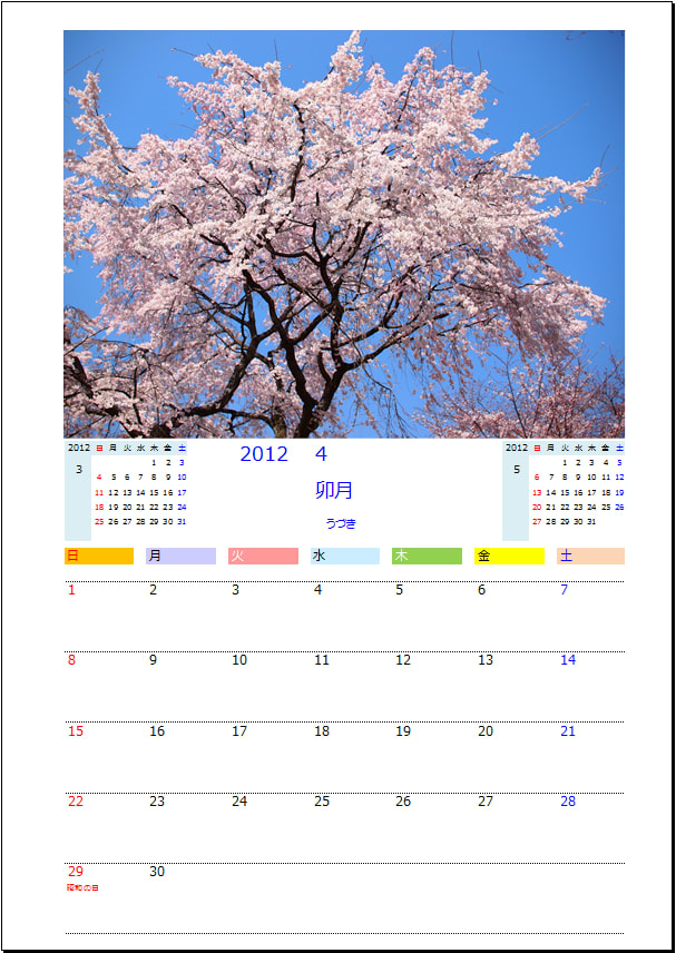 手軽に、キレイなカレンダーを作成できる、エクセル・マクロです。