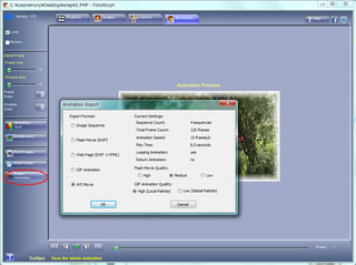 「Export Animation(アニメーション出力)」で、Flash・GIFアニメ・ビデオに出力できます。