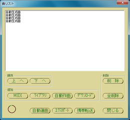 「開始」などのボタンで再生しますが、まずは「曲リスト」をクリック。