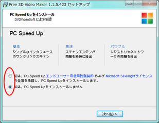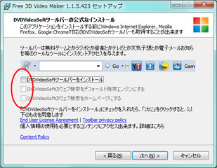 ↓とくに必要なければ、チェックを外してから「次へ」。