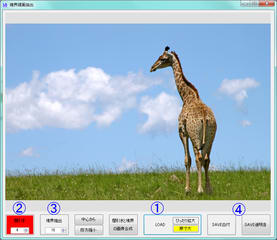 写真を256色で見立て、数値が大きいほど、色数を間引きます。