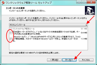ドロップダウン(▼)をクリックして、「カスタムインストール」を選びます。