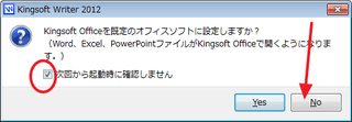 「次回から~確認しません」にチェックして、「No」をクリックすれば、