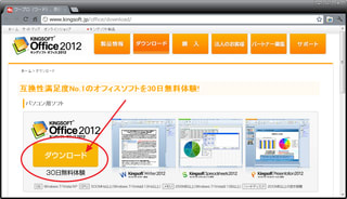 まずは、日本のキングソフトオフィスのページから、ダウンロード。