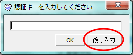 認証キーを要求されるので、試用中は「後で入力」をクリック。