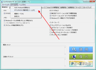 「ツール」メニュー→「MTU/RWIN 自動測定ツール」。