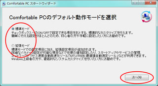 ↓「モード選択」のところでは、「拡張モード」を選んでおいたほうがいいかも。