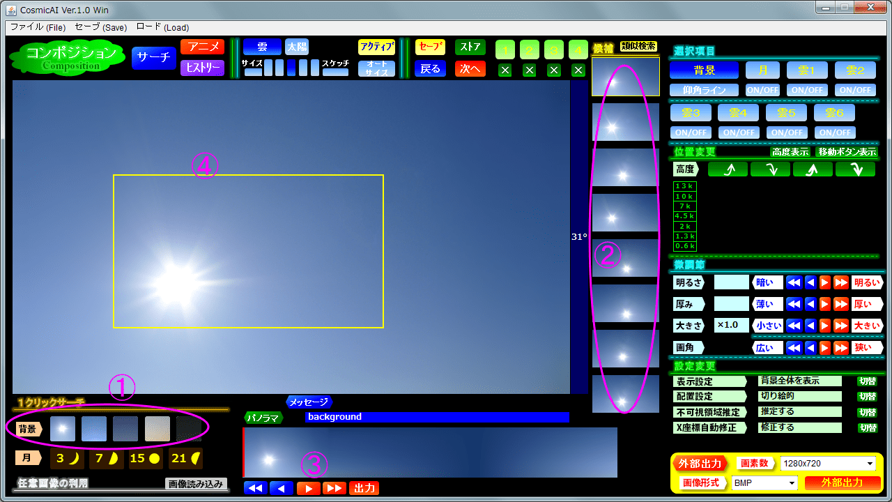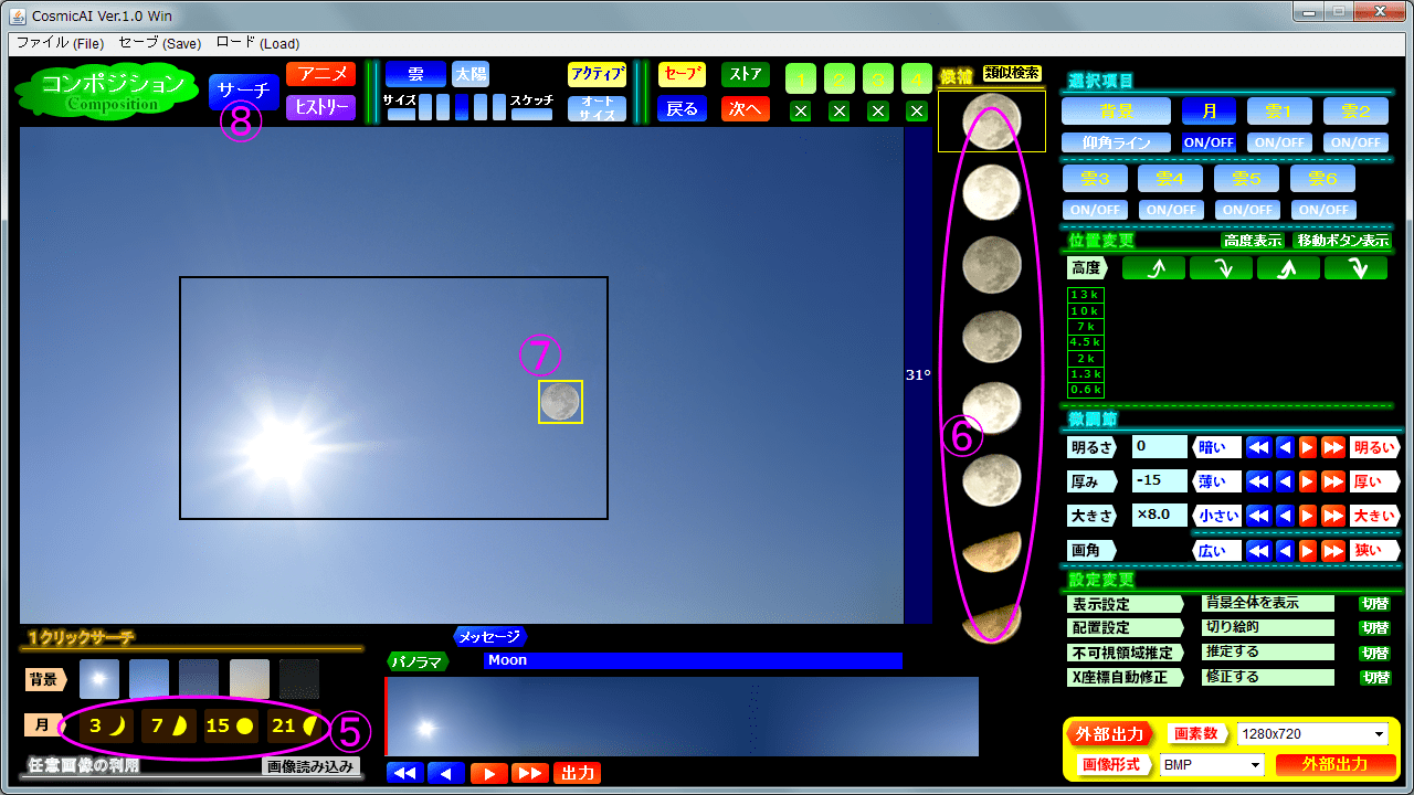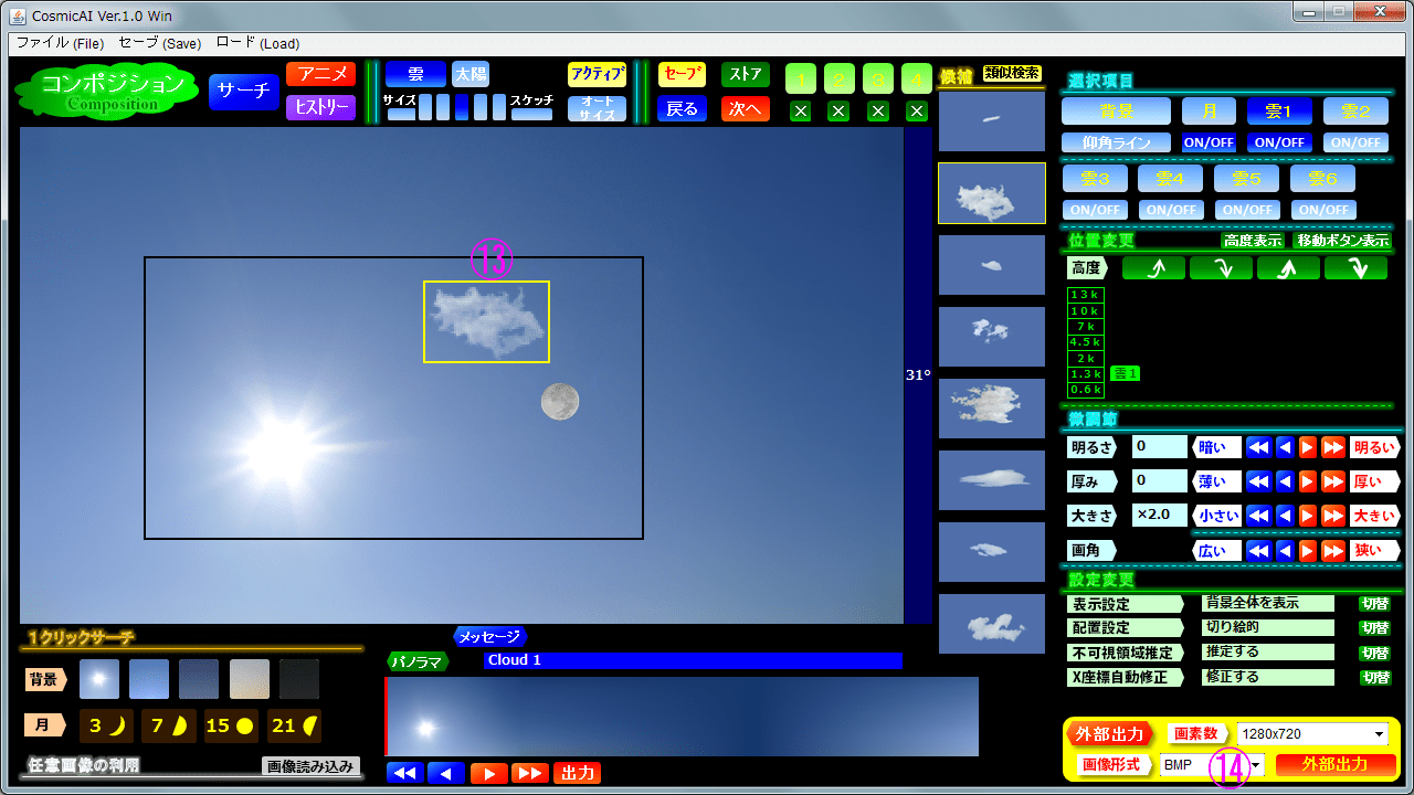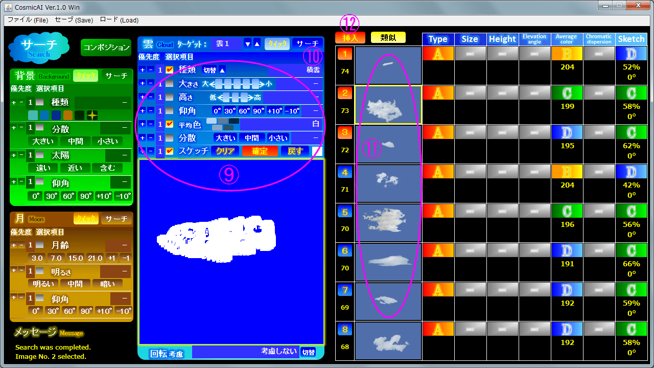 ⑨挿入したい雲の、おおまかな特徴を指定。
