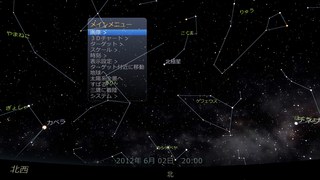 「ターゲット」メニュー、または名前の表示される天体をダブルクリックで、