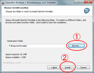 ①「Browse…」をクリックして、USBメモリを指定し、