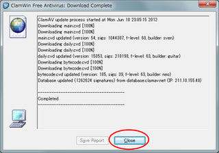 終了すると↓のように、「Close」ボタンが出るので、
