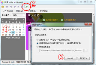 日記の内容は、自分のハードディスク(あるいはUSBメモリなど)に保存するので、