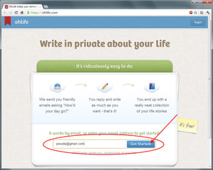 OhLife」サイトを開いて、メールアドレスを入力して、