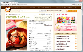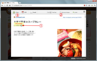 サンプルで、クックパッドのサイトを印刷してみましょう。