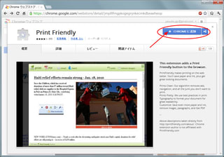 Chromeの拡張機能の「Print Friendly」ページを開きます。