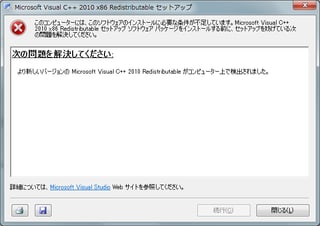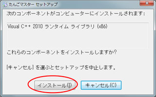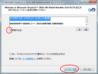 最初に、「Microsoft Visual C++ 2010 ランタイムライブラリ」のインストールがあります。